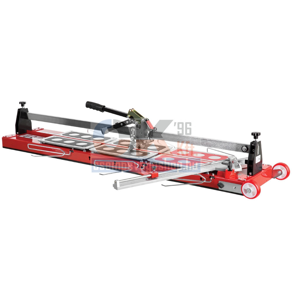 A masszív, vastag, 40x15 mm-es vezetősin, a csapágyazott vágókar és a dupla törőtalp teszi lehetővé a vastagabb burkolatok vágását és elroppantását. A nagyméretű, csapágyas vágókerék ideális rusztikus felületű lapok vágásához is. Az állítható derékszögnek köszönhetően diagonál és párhuzamos vágásokhoz is alkalmas.
